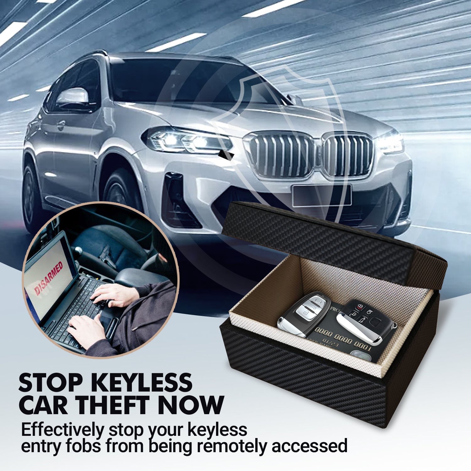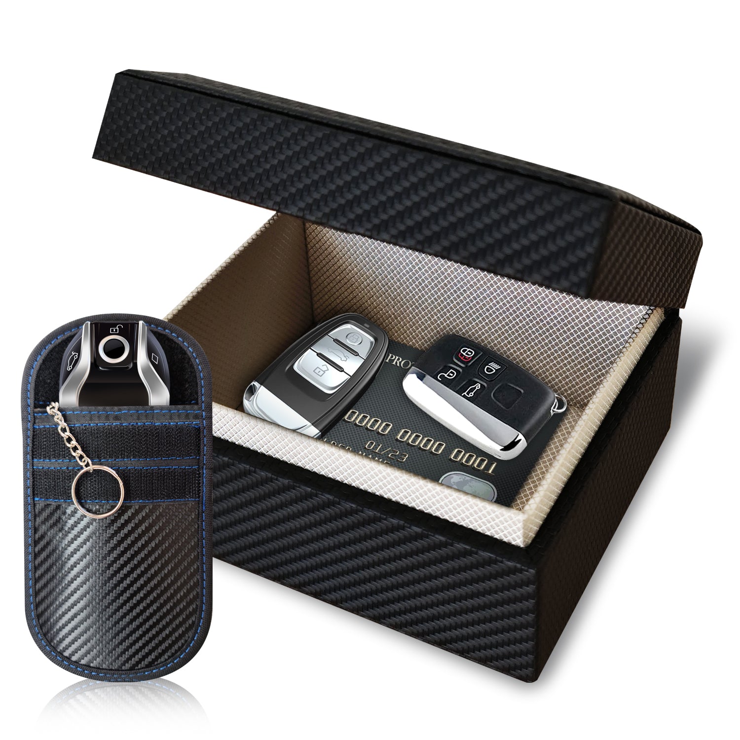 - [ ANTI-THEFT DEVICE ] Boost your car's safety with our Faraday Box and Pouch set, expertly engineered to prevent relay attacks, key cloning, and unauthorized access. Your keyless entry car keys are shielded with premium protection.