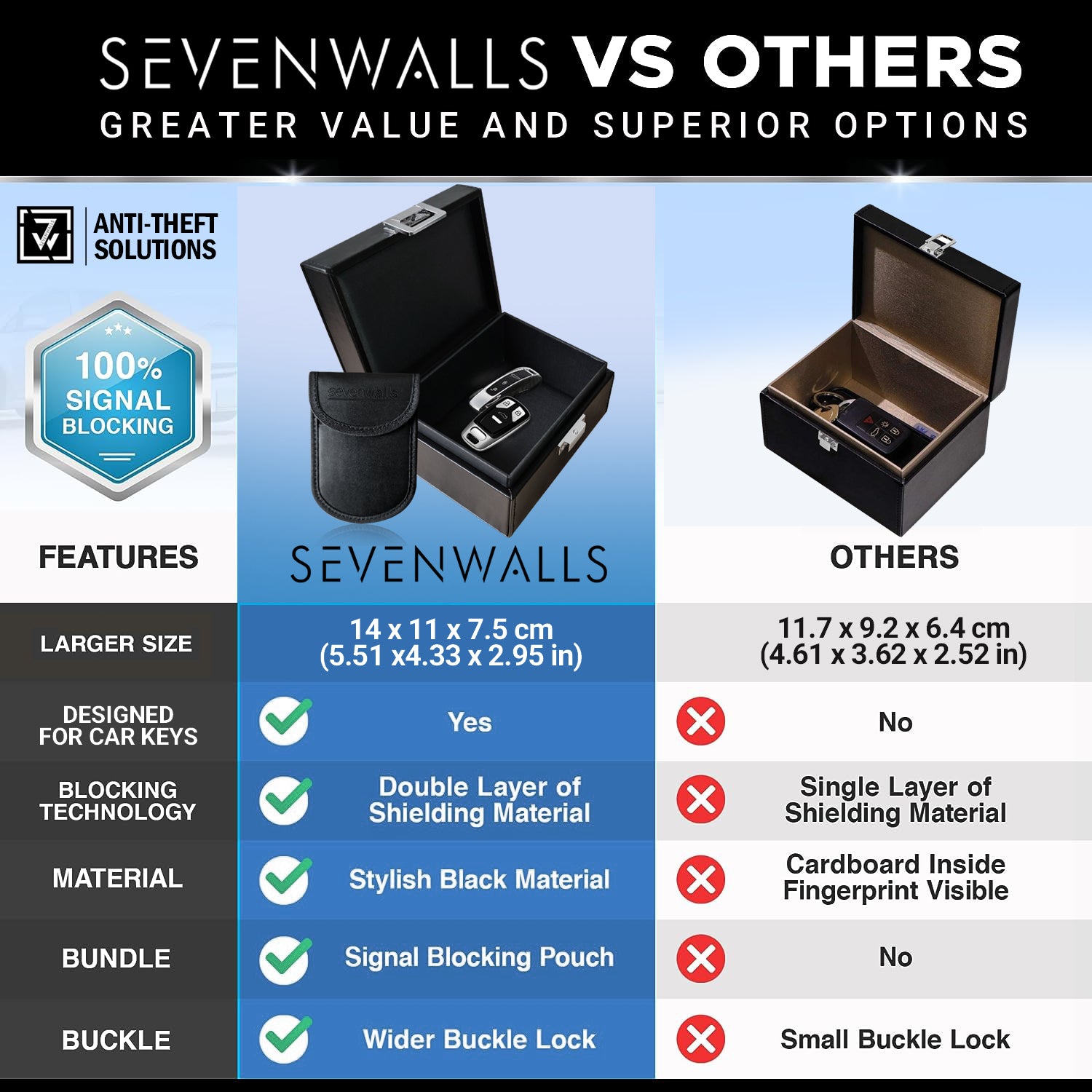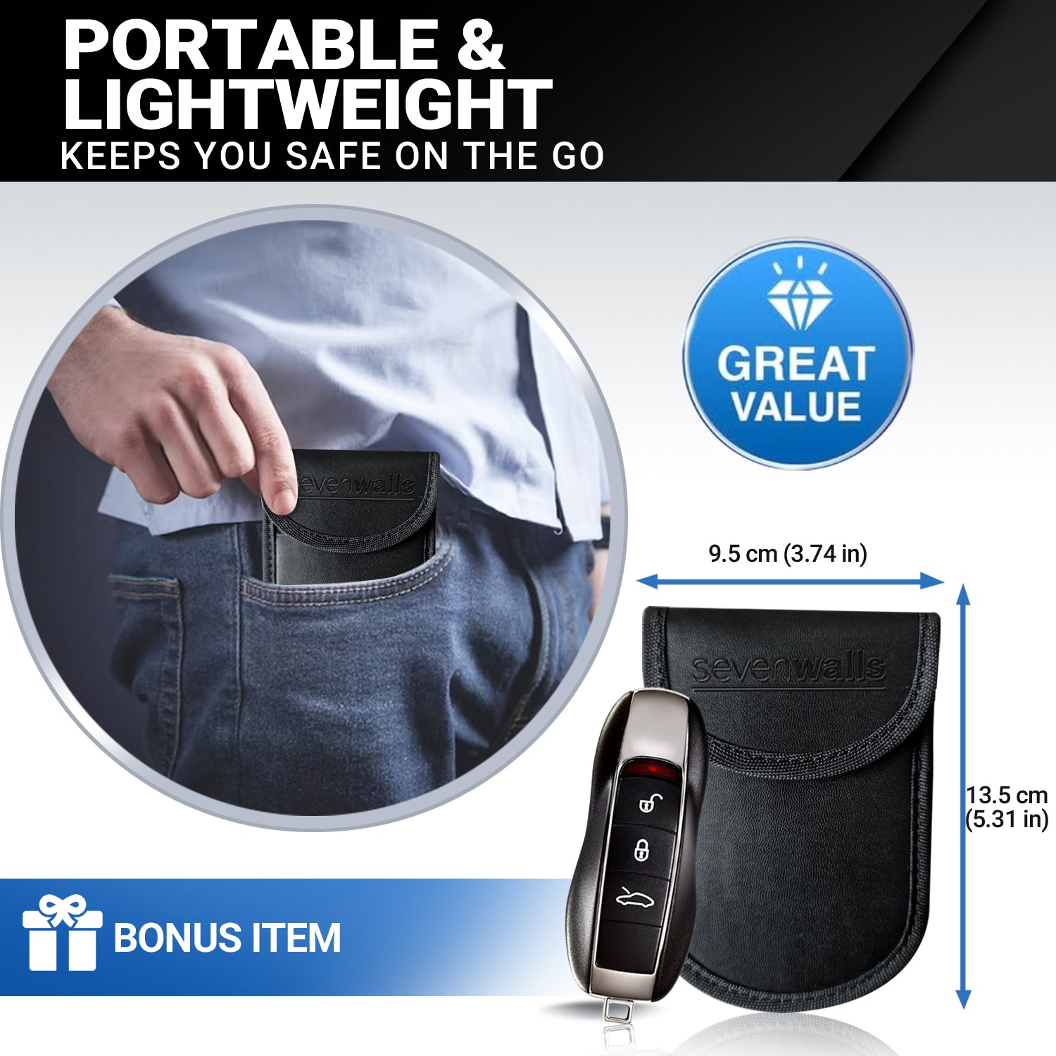 - 【Enhanced Vehicle Security】 Sevenwalls Faraday Box shields car keys from cloning and relay attacks, with an additional pouch for on-the-go protection.