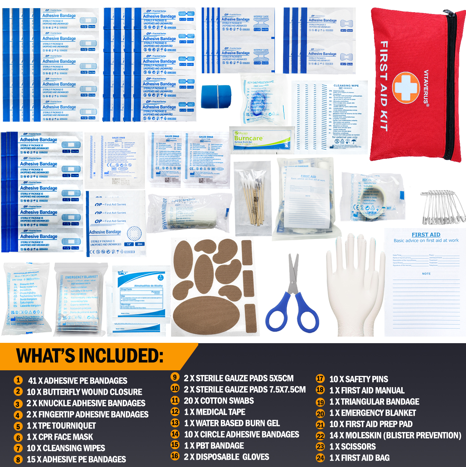 Vitaverus 180-Piece First Aid Kit – Emergency Medical Kit for Home & Travel